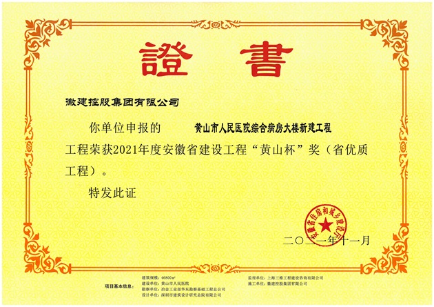 2021年度安徽省建設(shè)工程“黃山杯”獎(jiǎng)