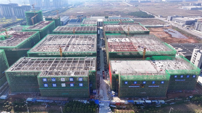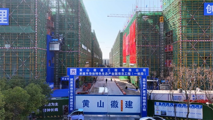 2025年3月19日,由黃山徽建工程有限公司承建的池州半導體特色生態(tài)產(chǎn)業(yè)園項目工程(一標段)全面封頂!